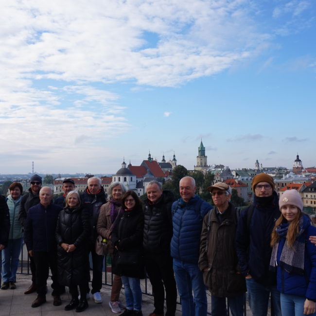 Zwiedzanie rozpoczęliśmy od Lubelskiego Zamku – a tam: wieża zamkowa, wystawy stałe, Kaplica Trójcy Świętej i oczywiście stół z odciskiem czarciej łapy. Czas nas gonił a tak najbardziej poganiał wszystkich – ten który za ten wziął odpowiedzialność – kol. Grzegorz Osior. Następnie odbyliśmy spacer starym miastem z zapoznaniem smakowym lubelskich cebularzy. Krakowskim Przedmieściem dotarliśmy przez Plac Litewski do ogrodu saskiego gdzie spotkaliśmy mieszkające tam pawie. Następnym punktem trasy była Katedra Lubelska. Na obiad zatrzymaliśmy się w magicznej „Zaczarowanej dorożce”.  Kolejnym punktem naszej wycieczki był obóz koncentracyjny na Majdanku. Pani przewodniczka z mocnym zacięciem historyczny opowiadał nam o tragedii ludzi którzy przeszli przez to miejsce w czasie II wojny światowej. W drodze powrotnej zatrzymaliśmy się jeszcze na chwile zadumy pod pomnikiem ofiar rzezi wołyńskiej w Domostawie.