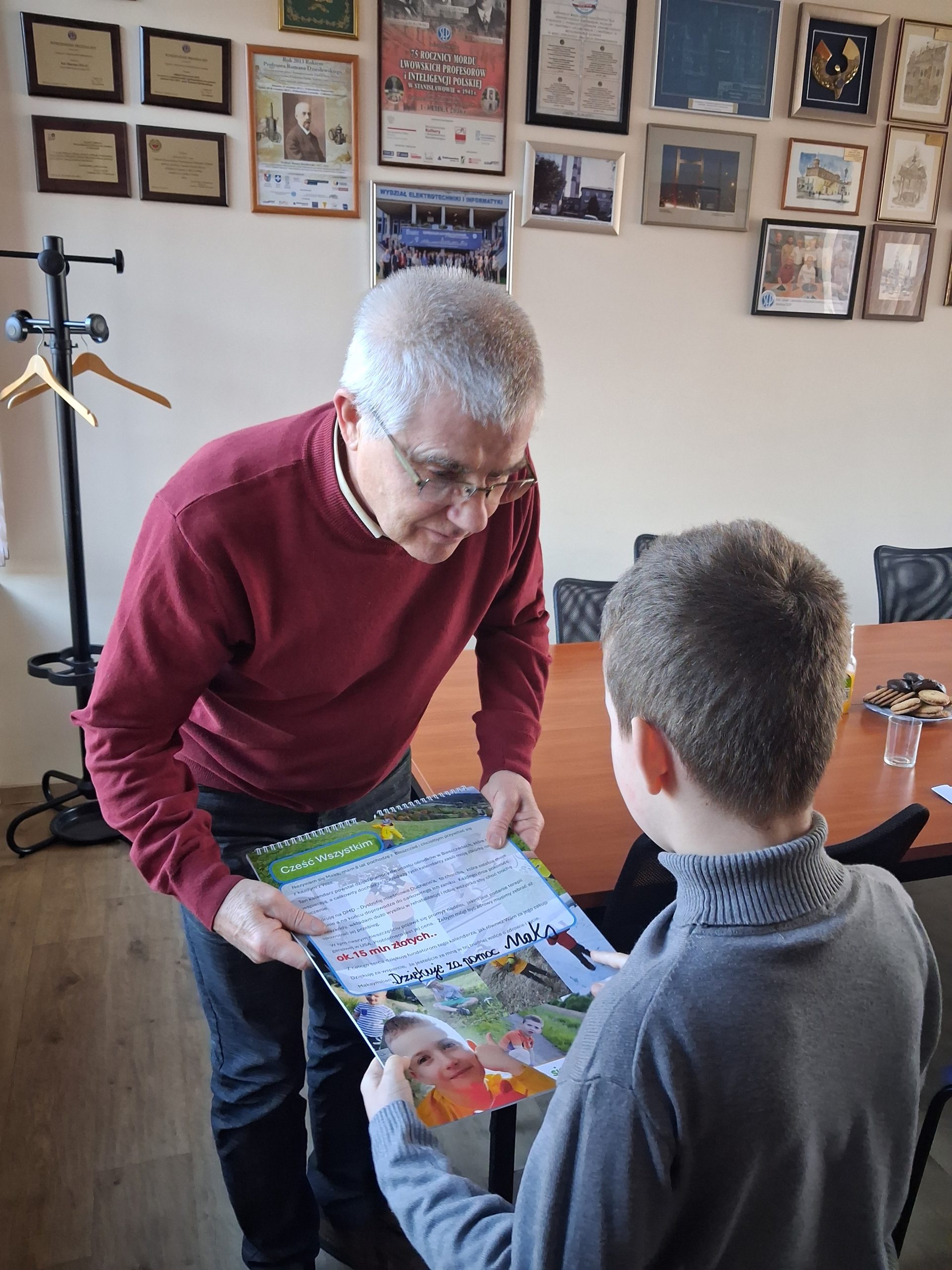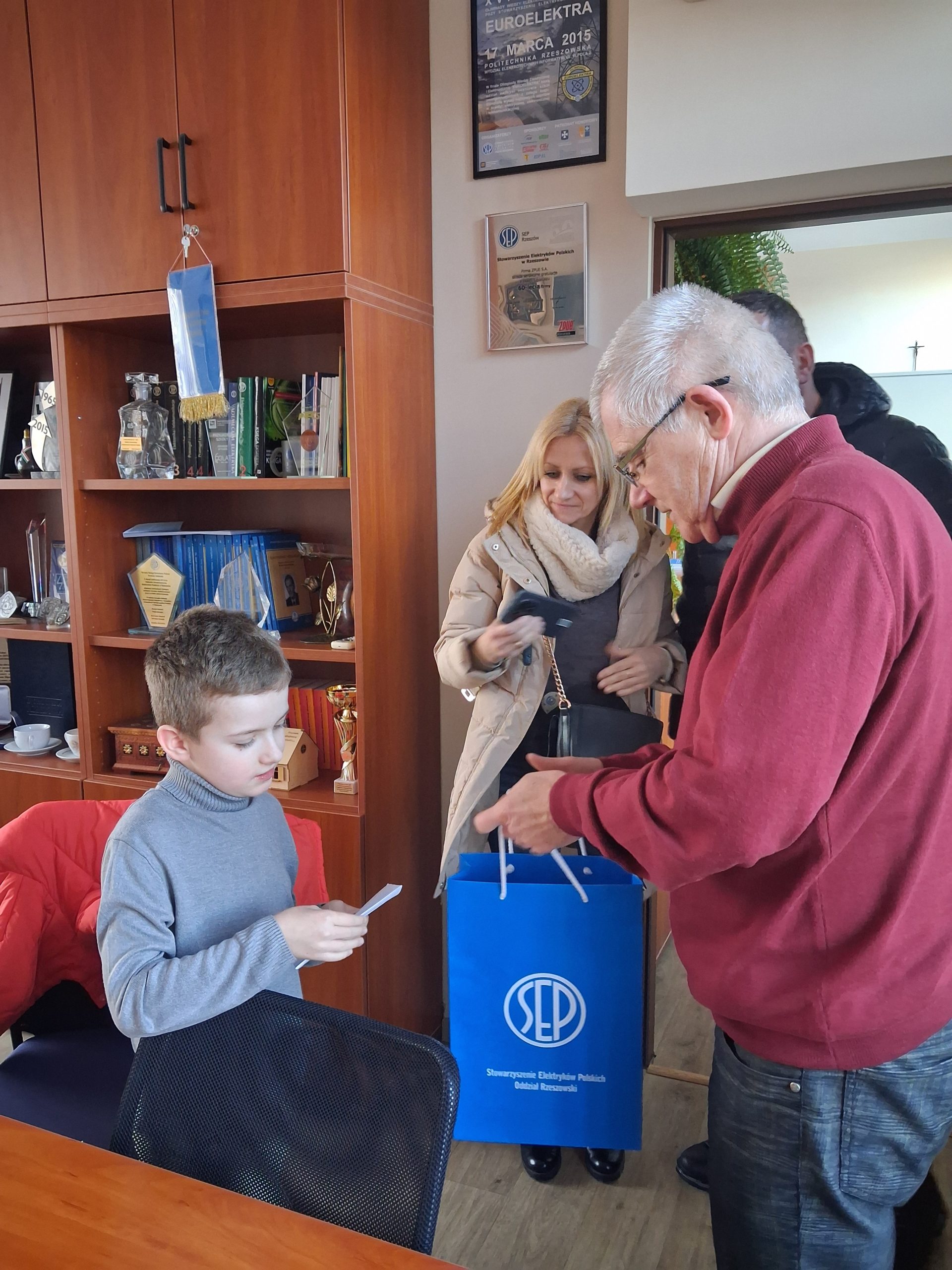 Podczas Balu udało się zebrać ponad 1800 złotych. 27 stycznia biuro Oddziału Rzeszowskiego SEP odwiedził wraz z rodzicami mały bohater. Prezes Zbigniew Styczeń przekazał chłopcu pieniążki zebrane ze zbiórki oraz prezent. Maks zaś podarował członkom Oddziału wyjątkowy kalendarz, z którego dochód ze sprzedaży zasili jego konto zbiórki na portalu siepomaga.pl.